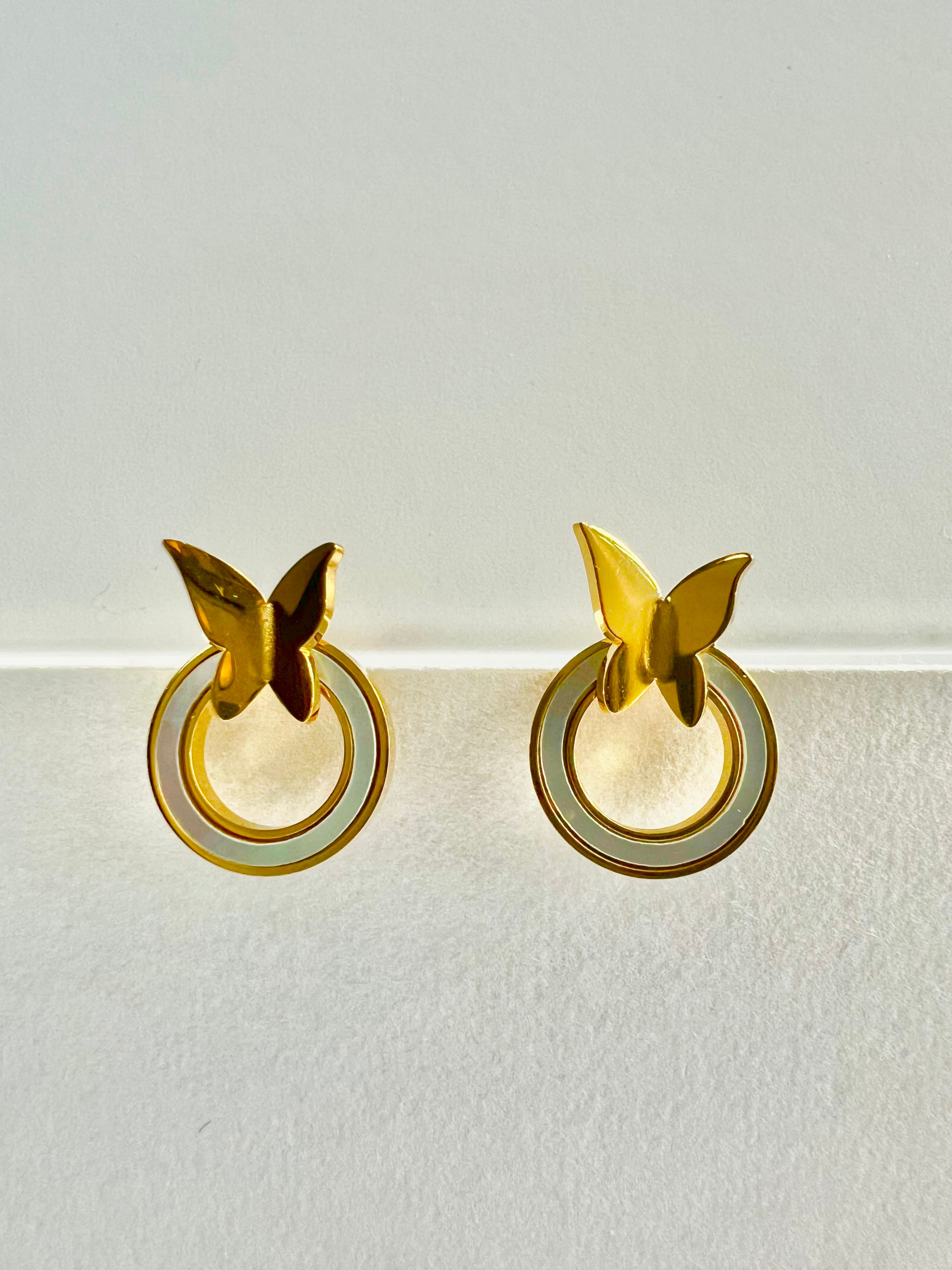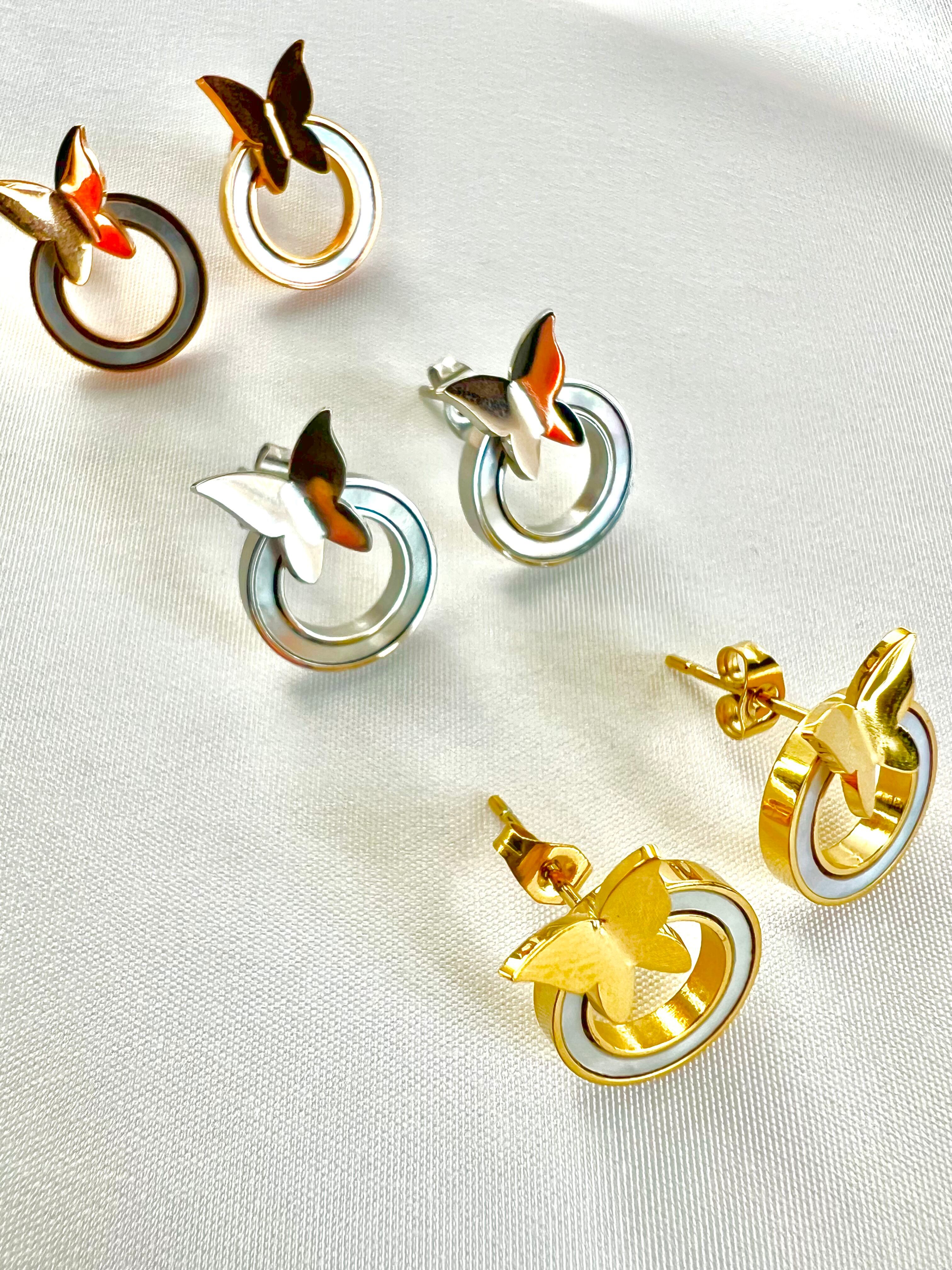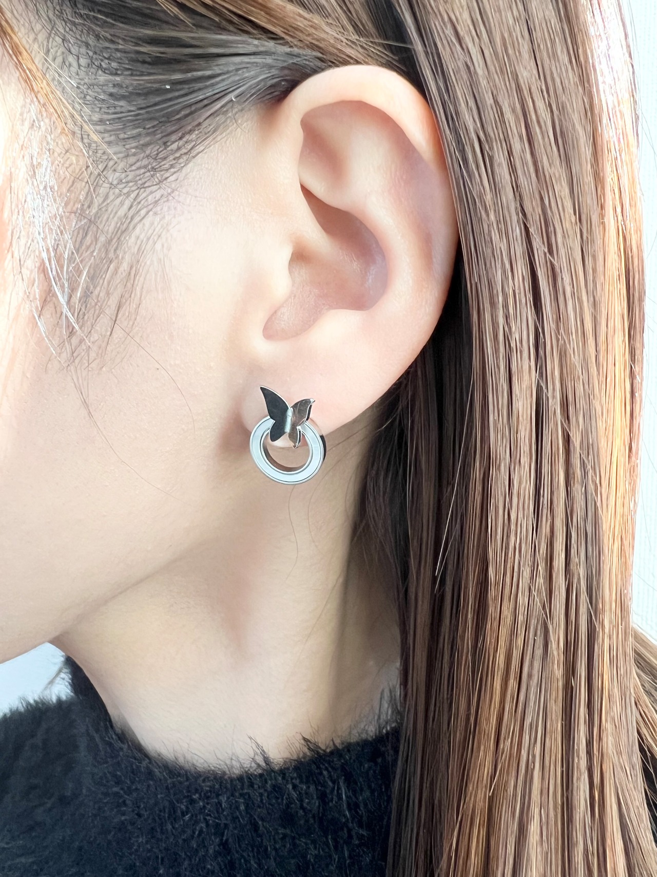 ステンレス バタフライ×リングピアス
