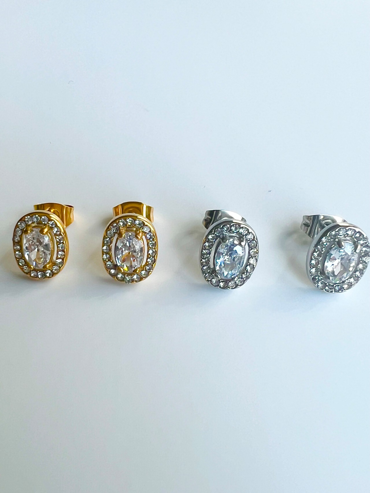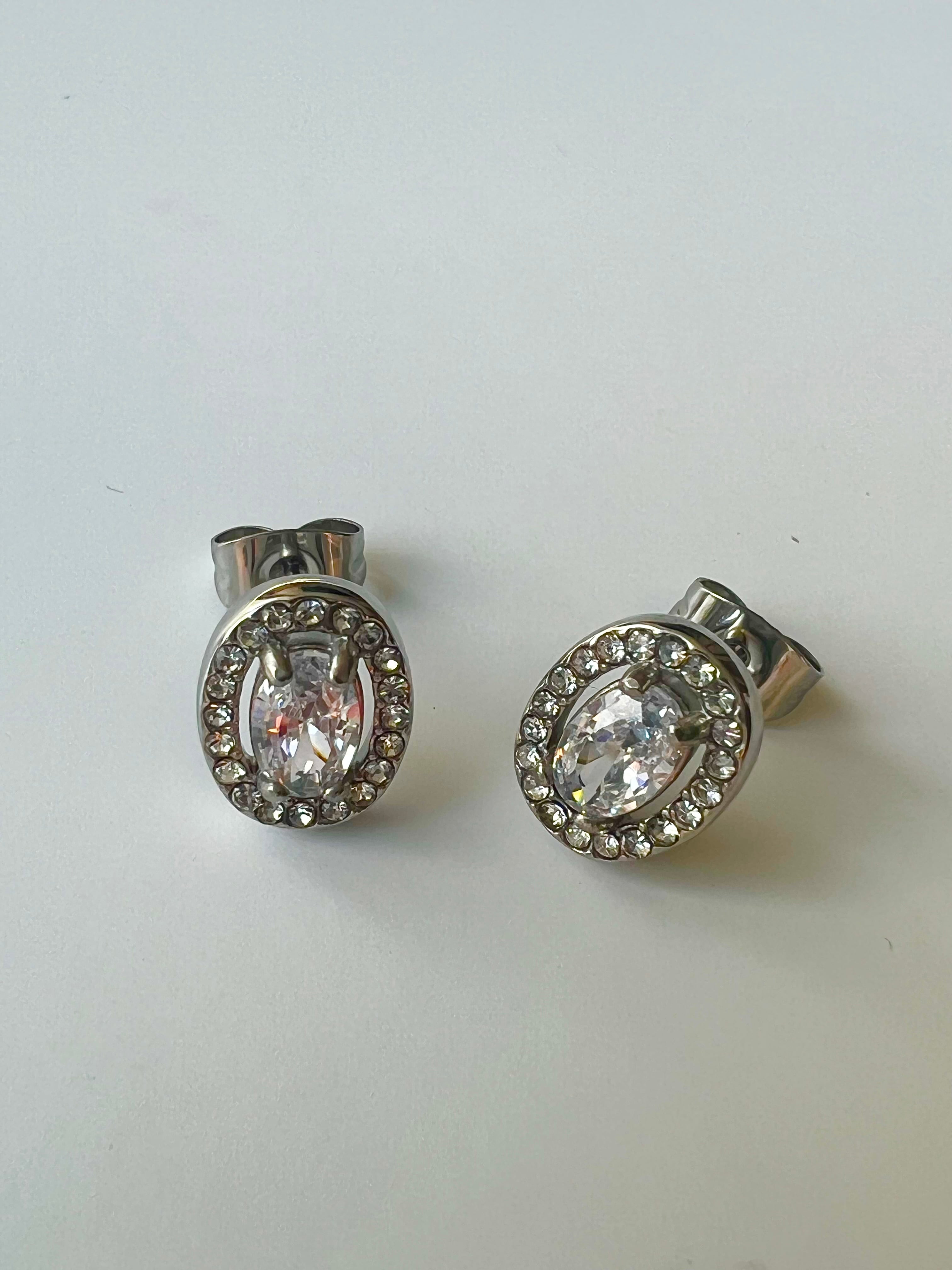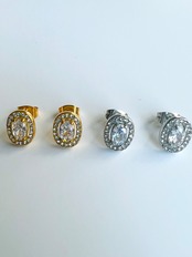 ステンレス ビジューオーバルピアス