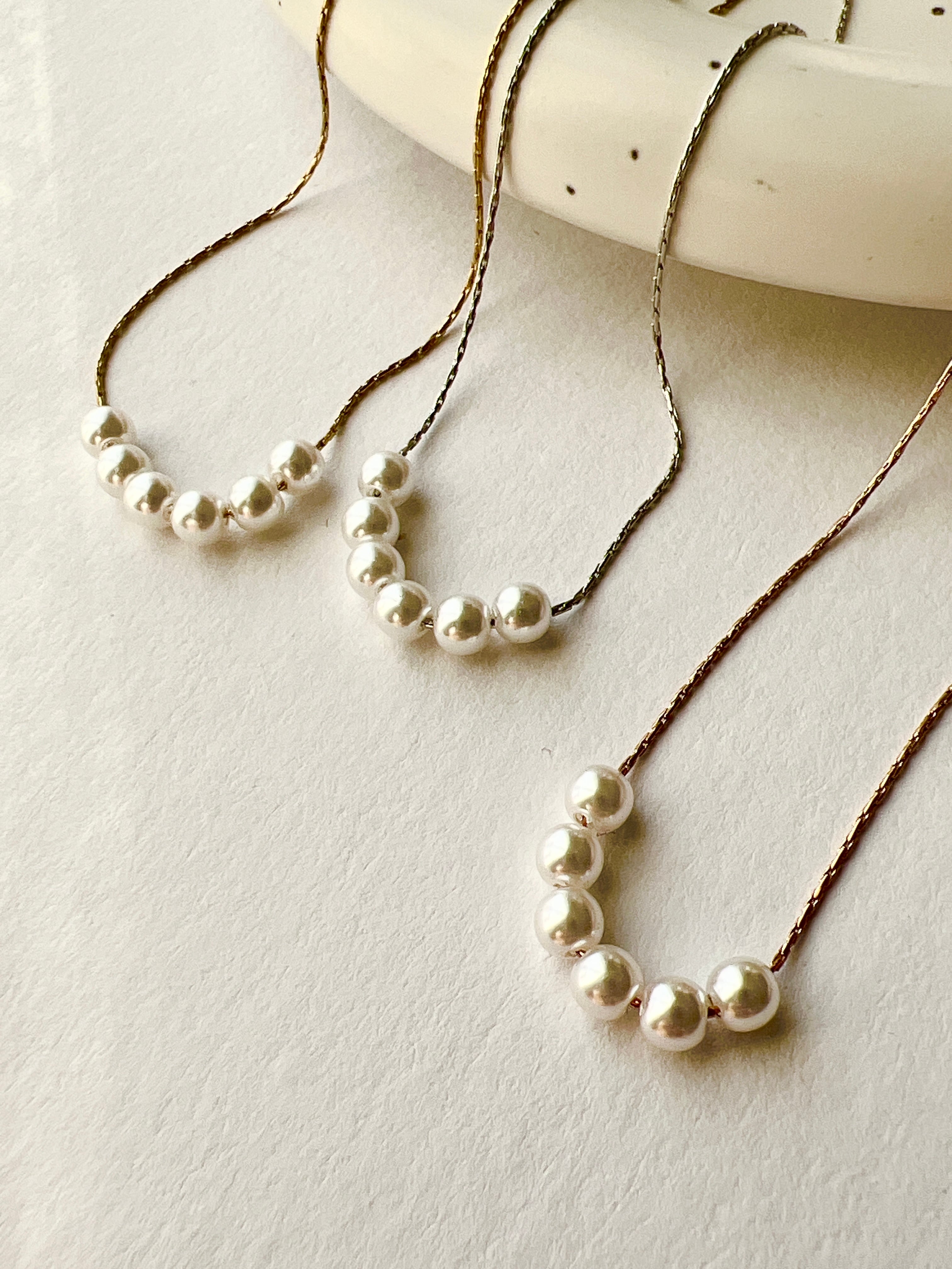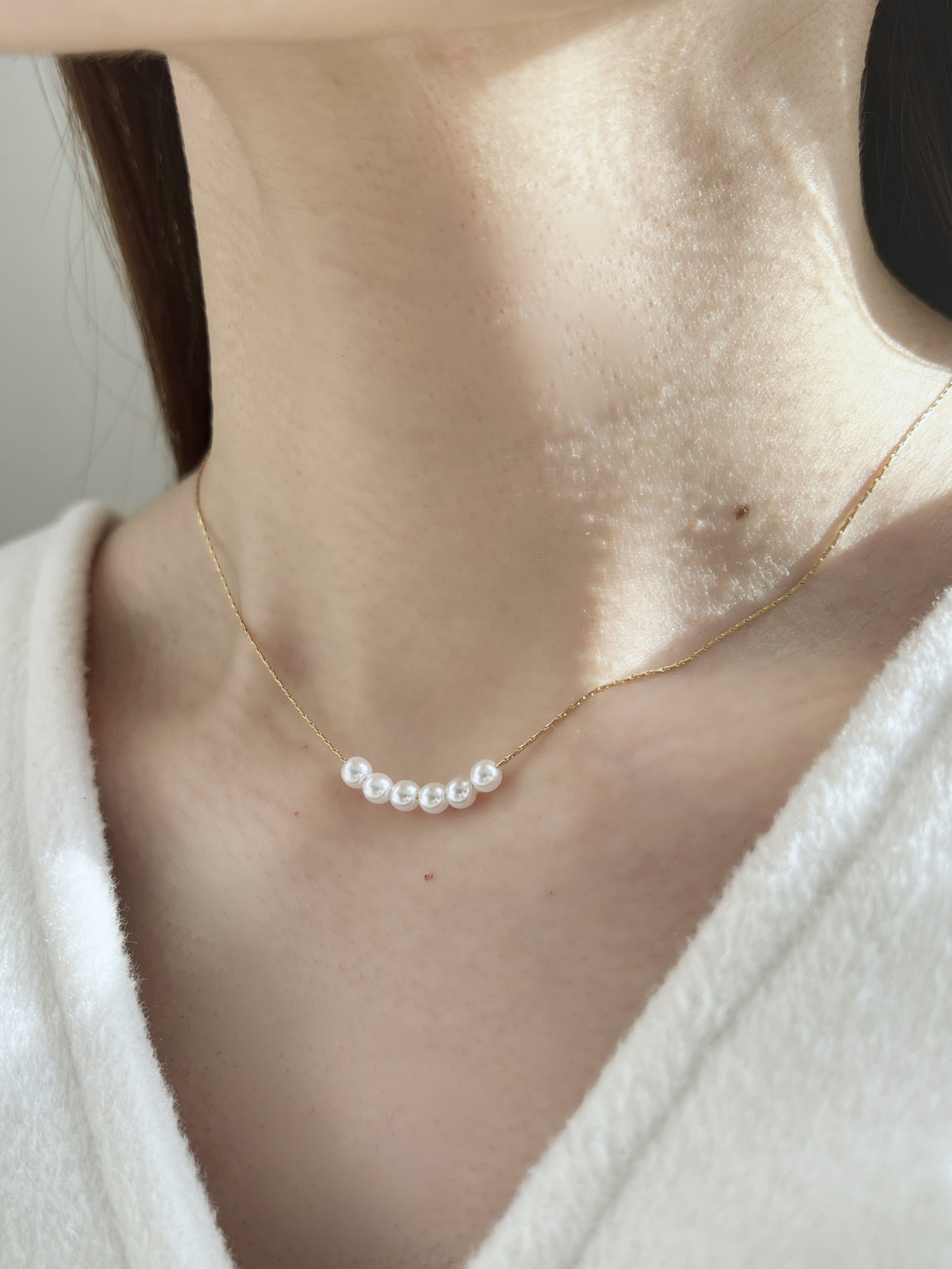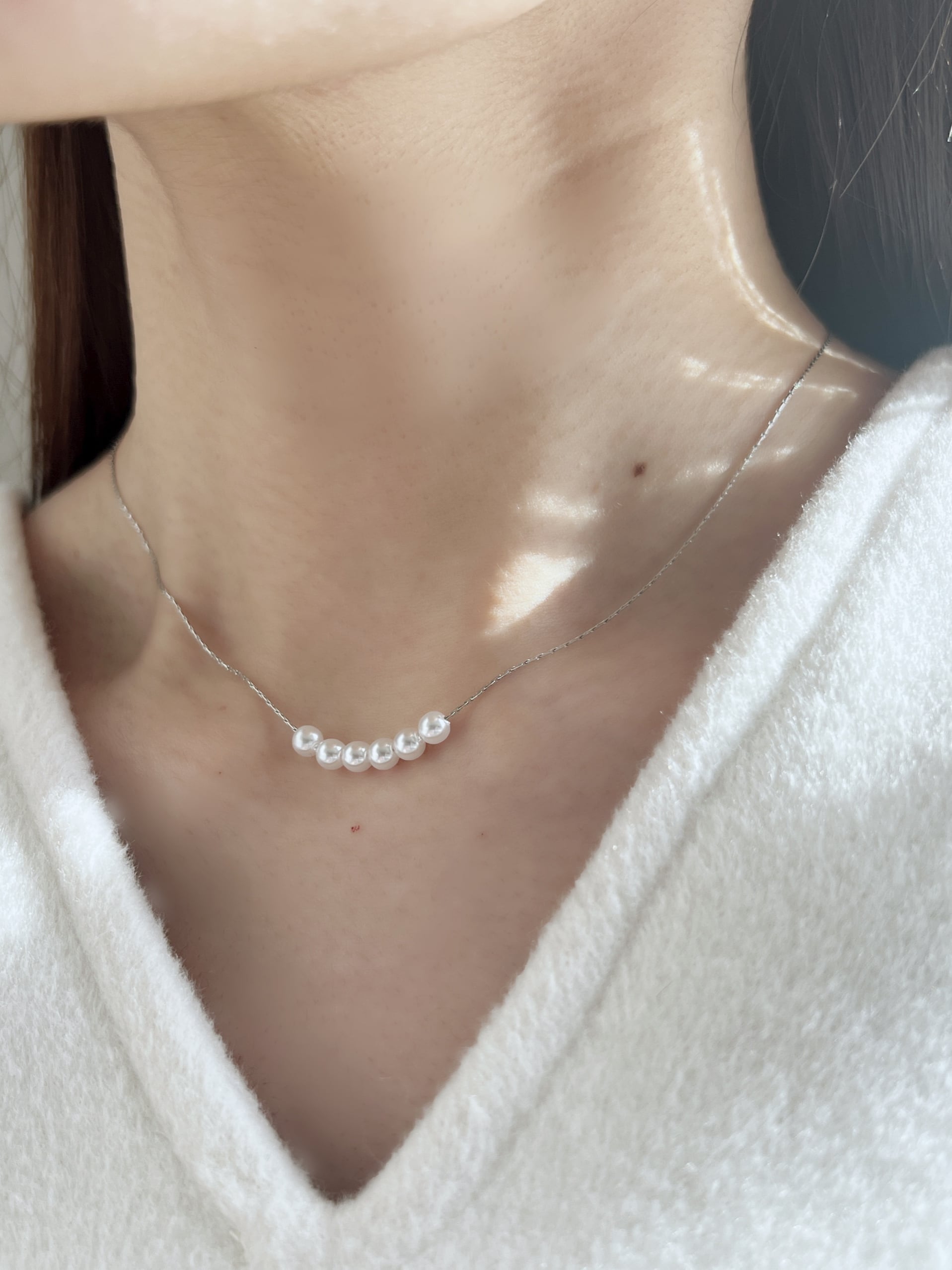 華奢なチェーンと小粒パールが上品なデザインのネックレス