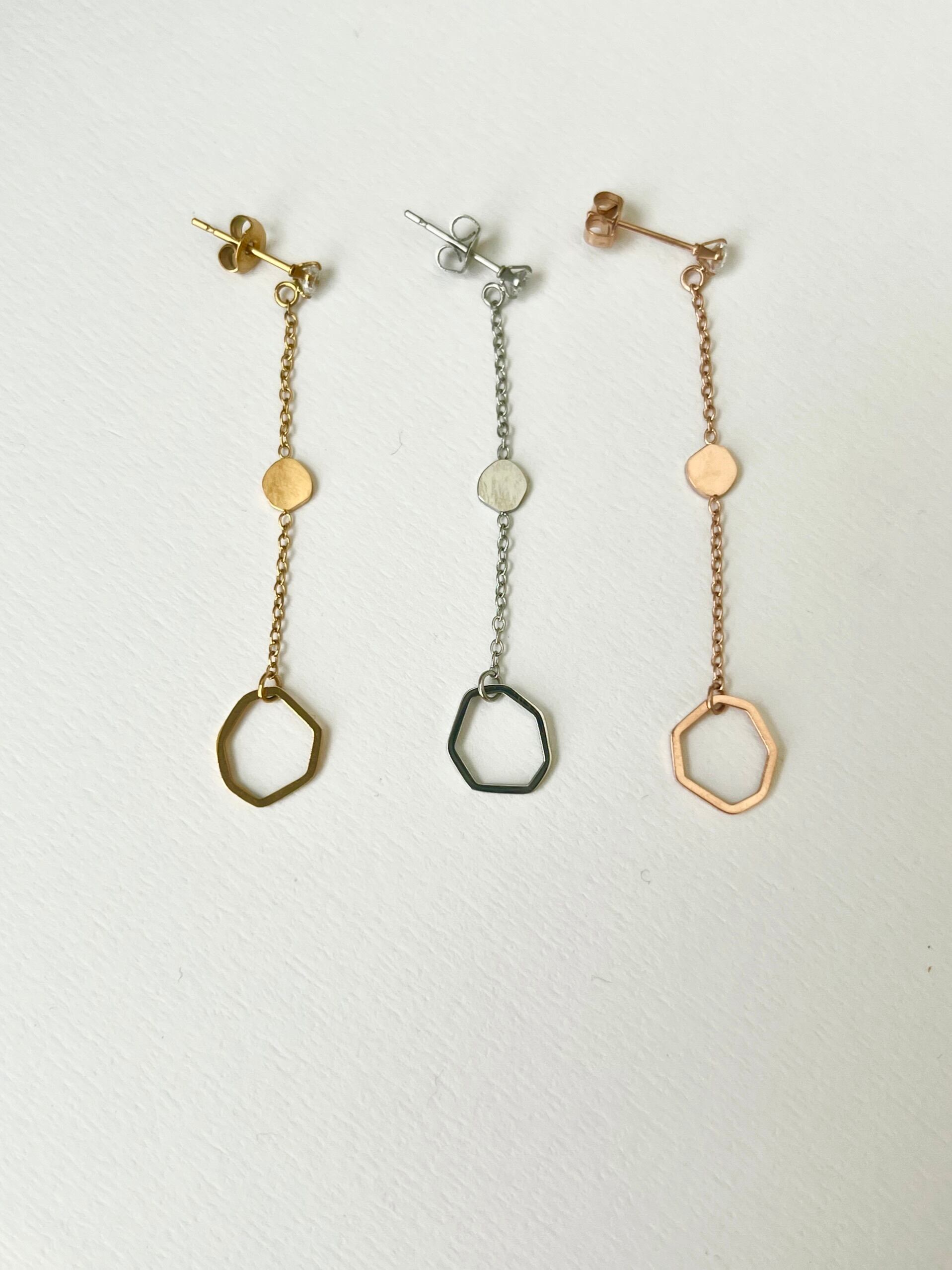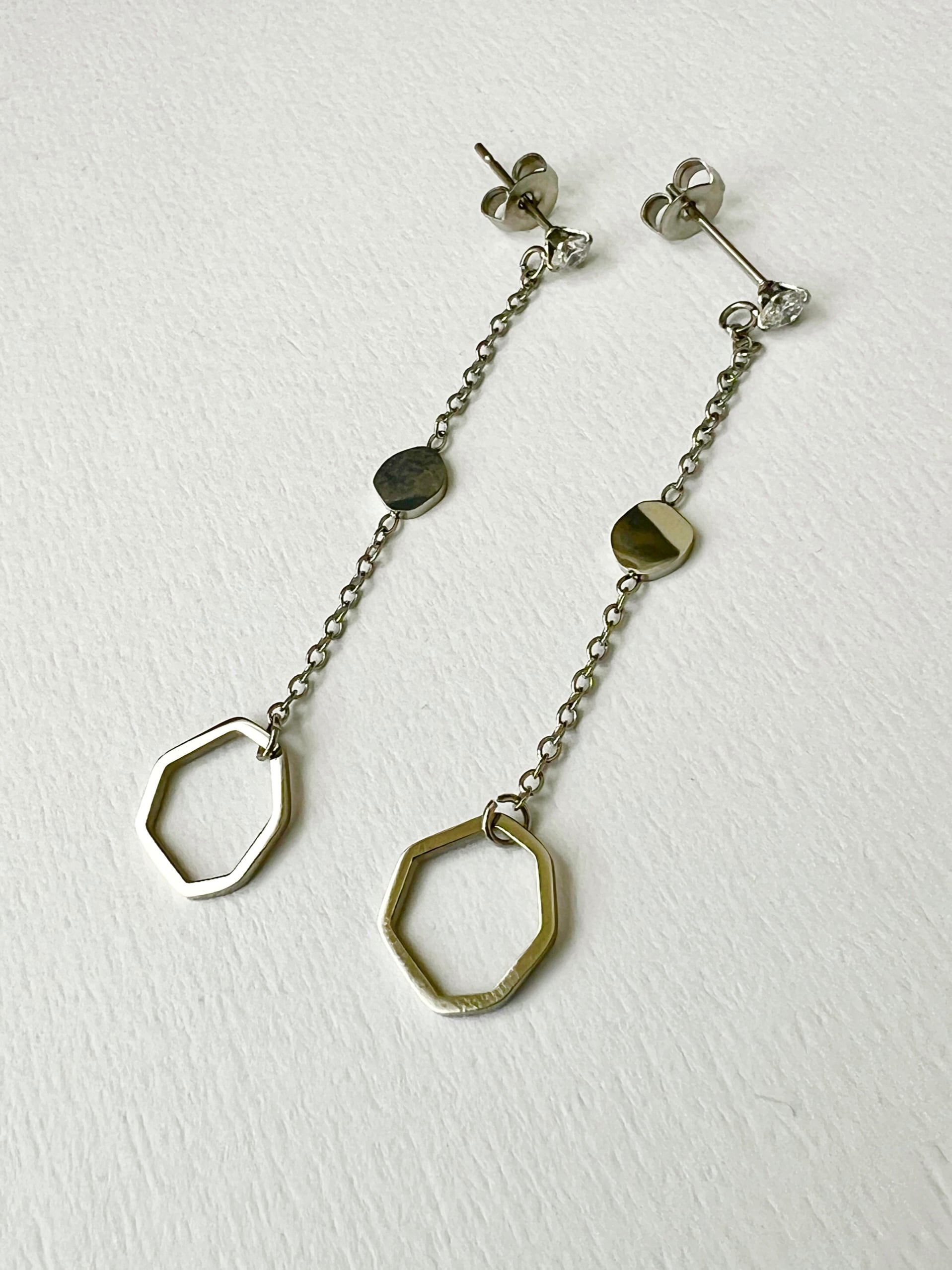 ステンレス ヘプタゴンモチーフチェーンロングピアス