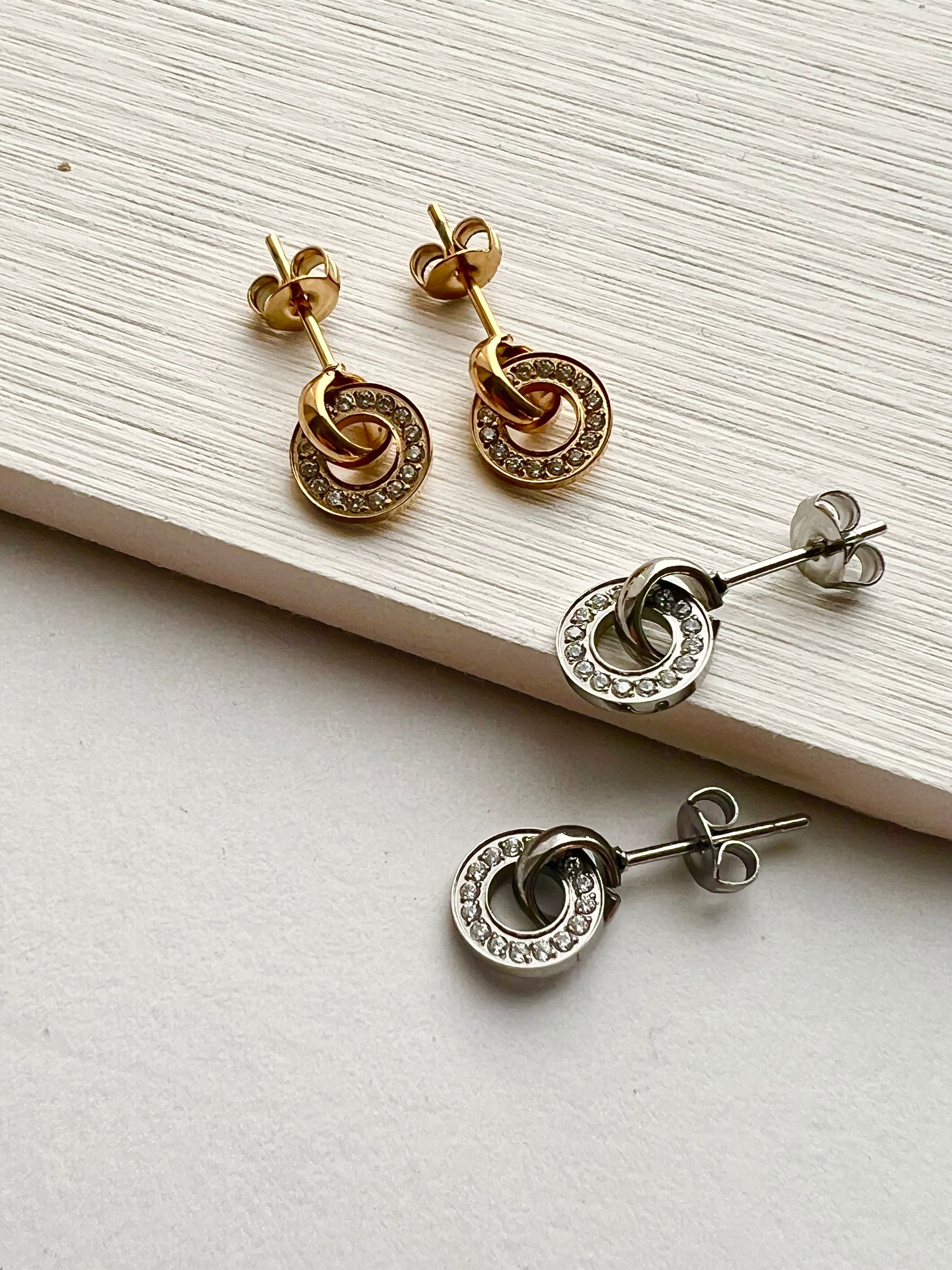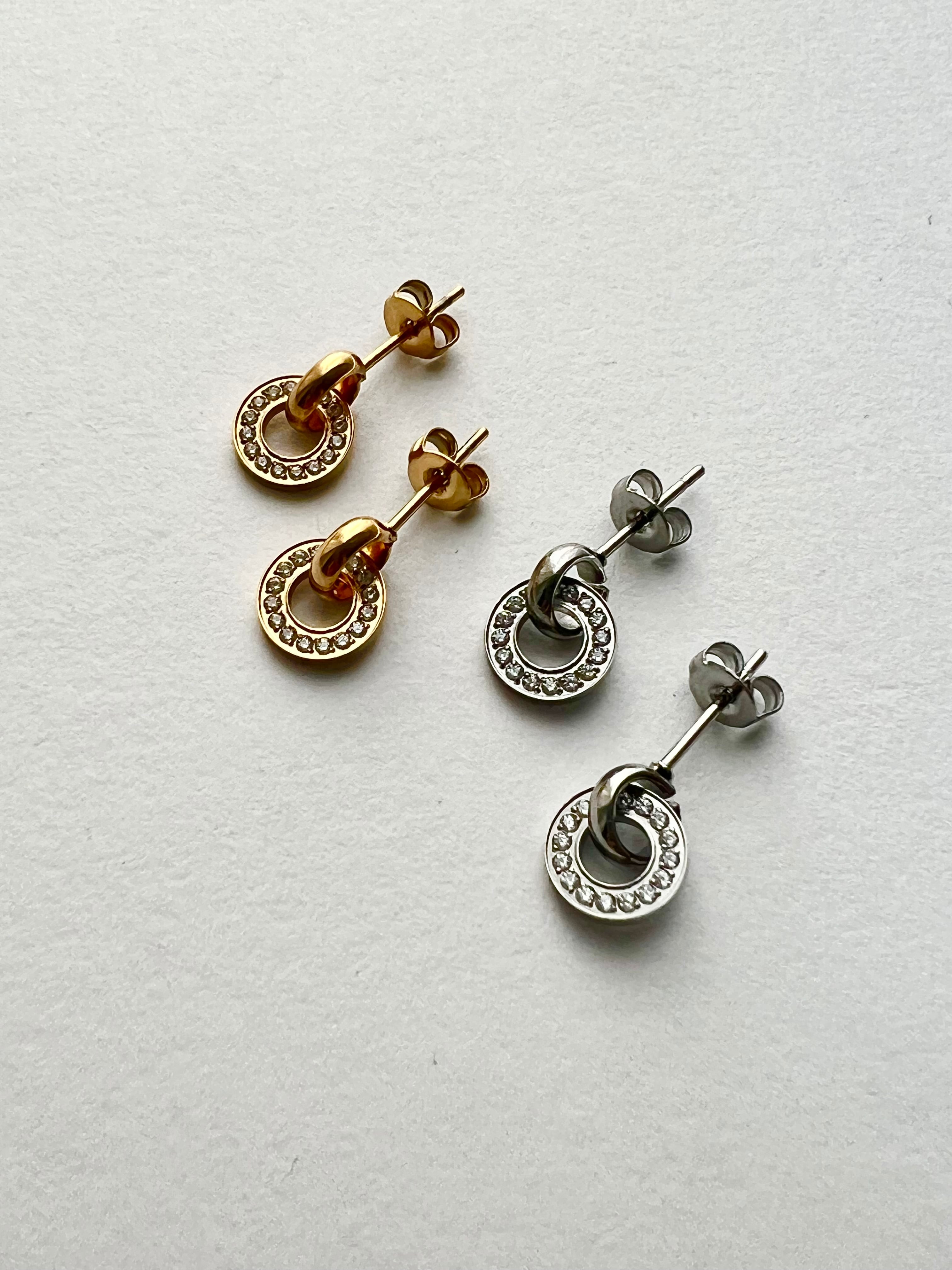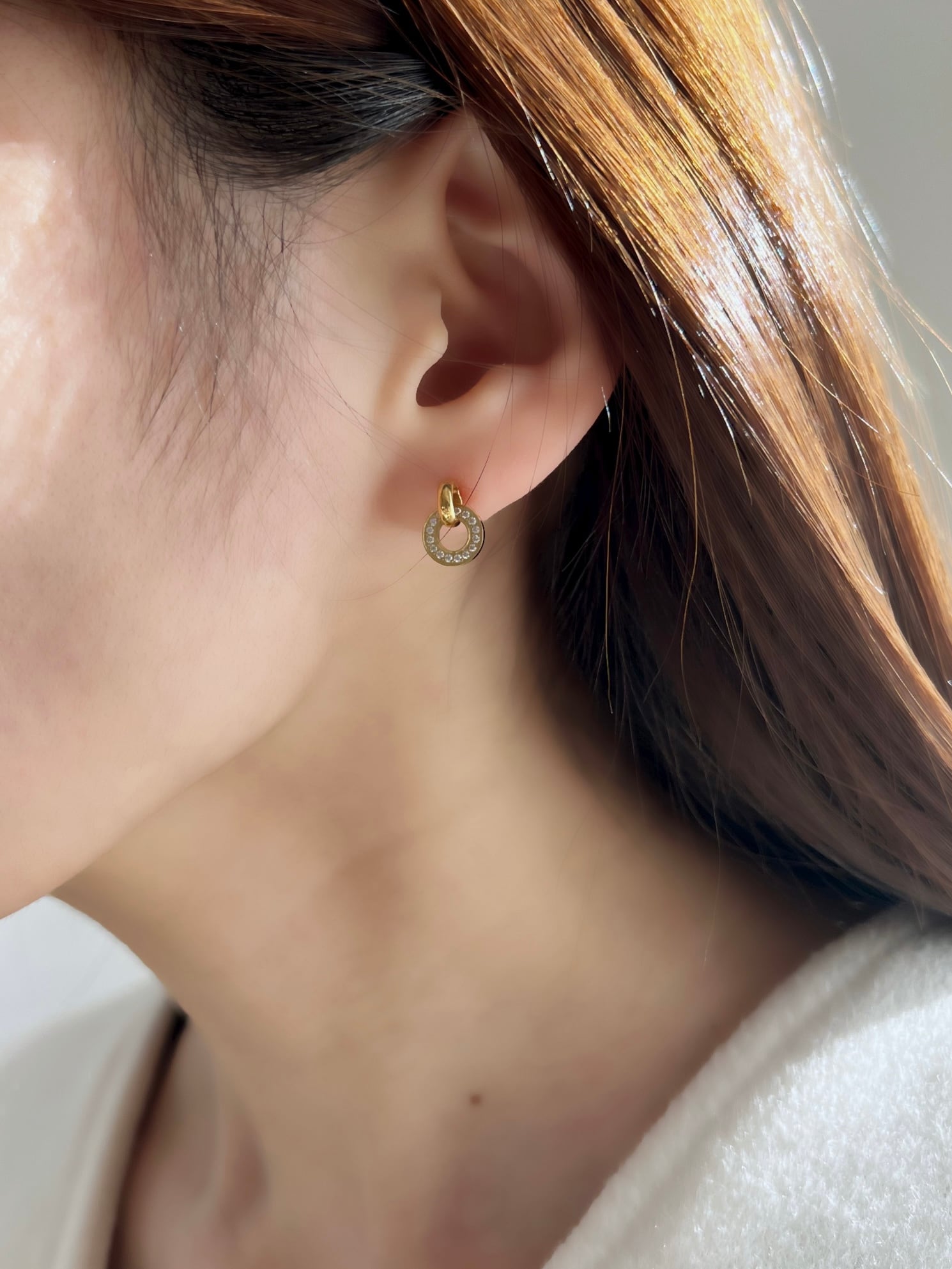 小さいながらもビジューの上品な煌めきが程よく耳元を華やかに
